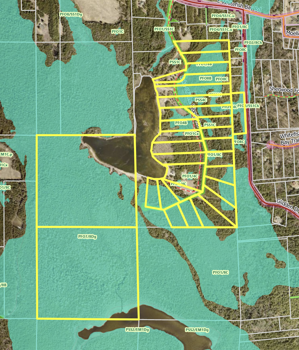 The current Door County GIS maps have proposed much of this area as Wetlands. Future investors will want to complete a wetland delineation with the DNR to confirm where the wetlands actually exist and how much of the area it actually covers.